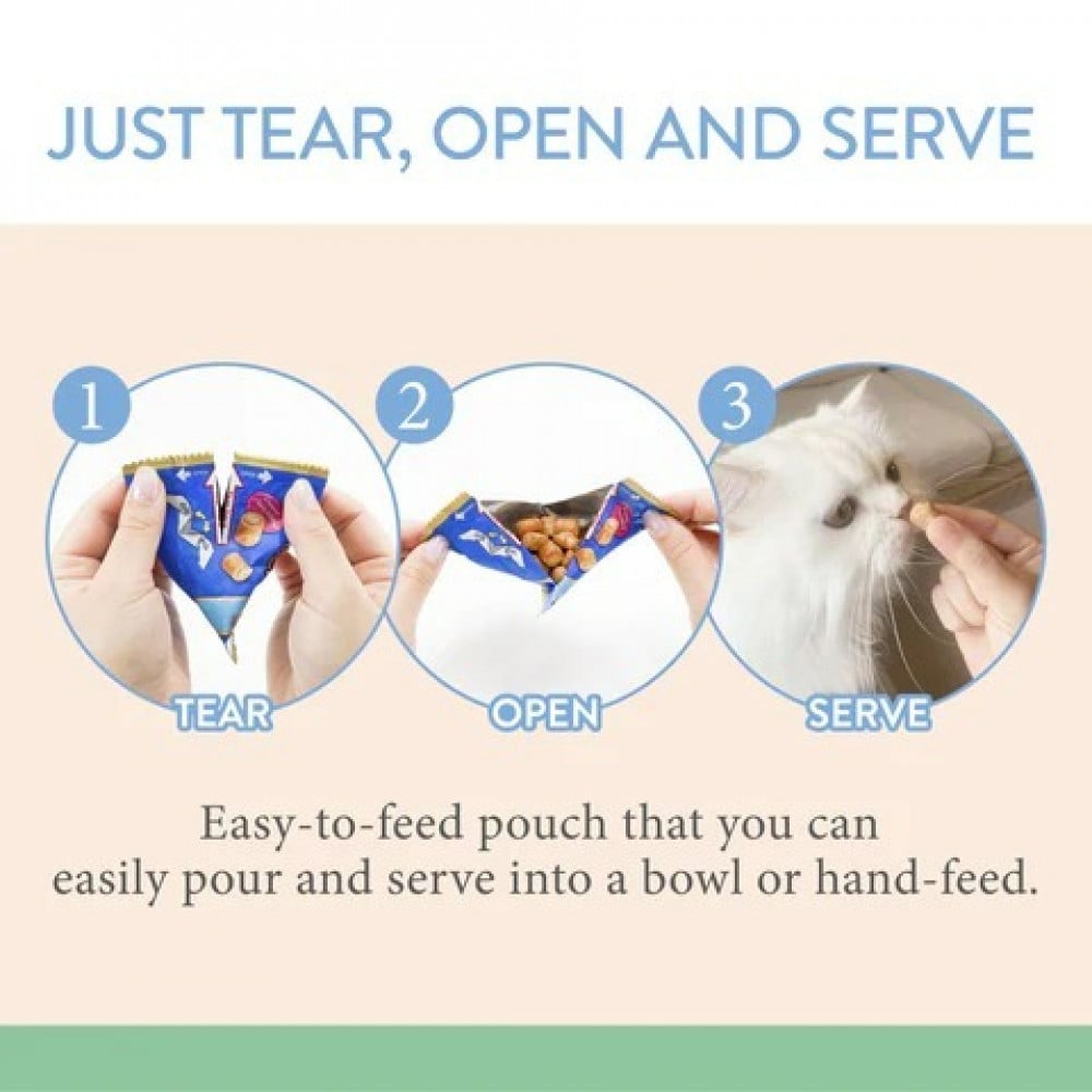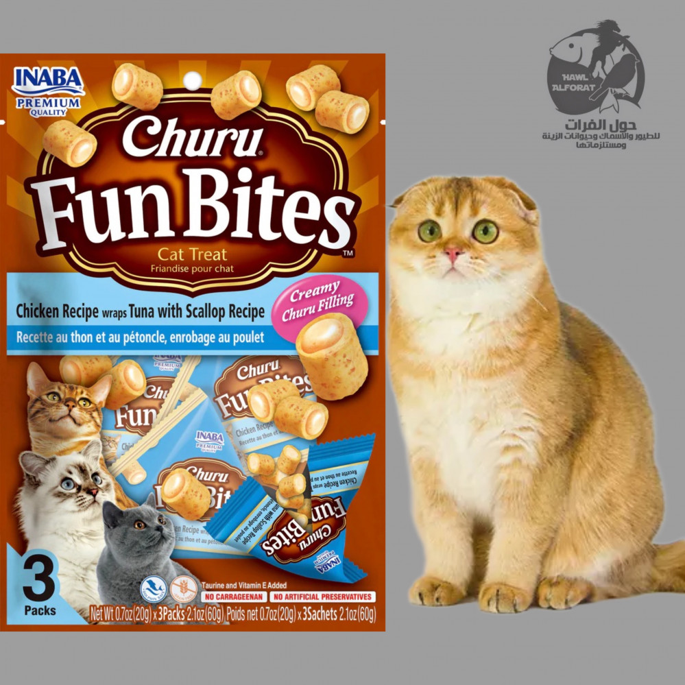 Churu Fun Bites هي وجبات دجاج طبيعية ناعمة على شكل وسادة ، مع حشوة كريمة تشورو بالداخل. مصنوع من النكهات الطبيعية وخلاصة الشاي الأخضر والتوراين وفيتامين إي بدون حبوب أو مواد حافظة أو ألوان صناعية. تحتوي كل عبوة على ثلاث عبوات تترا للحفاظ على الحد الأقصى من